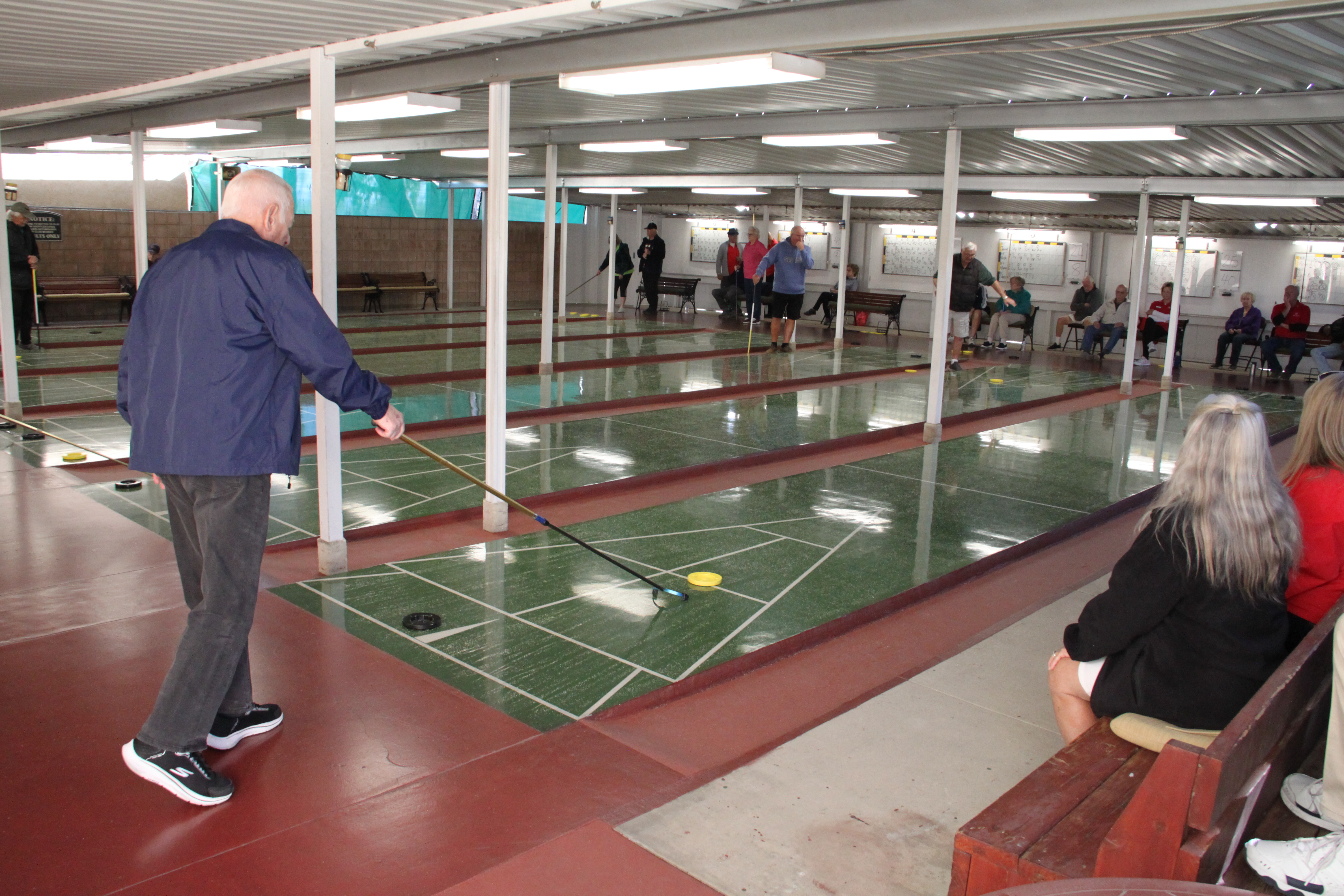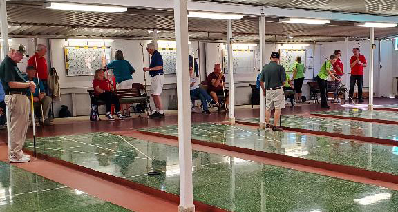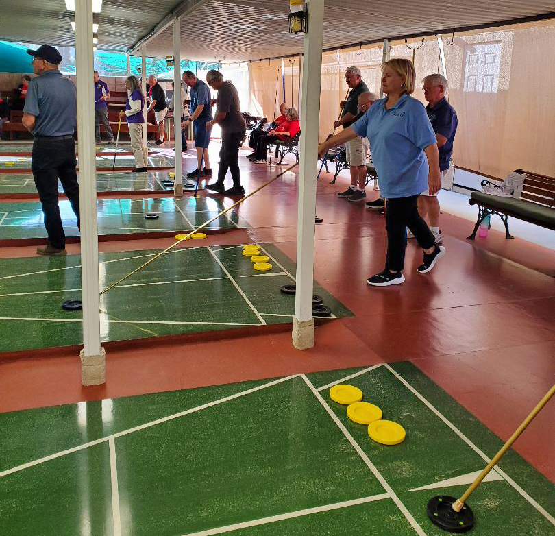 Forty District 5 shufflers competed against 40 District 7 shufflers in the annual Desert Challenge. The event was hosted by District 5 this year at Royal Palms in Cathedral City, CA. District 5 provided the referees and scorekeepers for the event which used 10 boards at 9 AM and 10 boards at 1 PM.