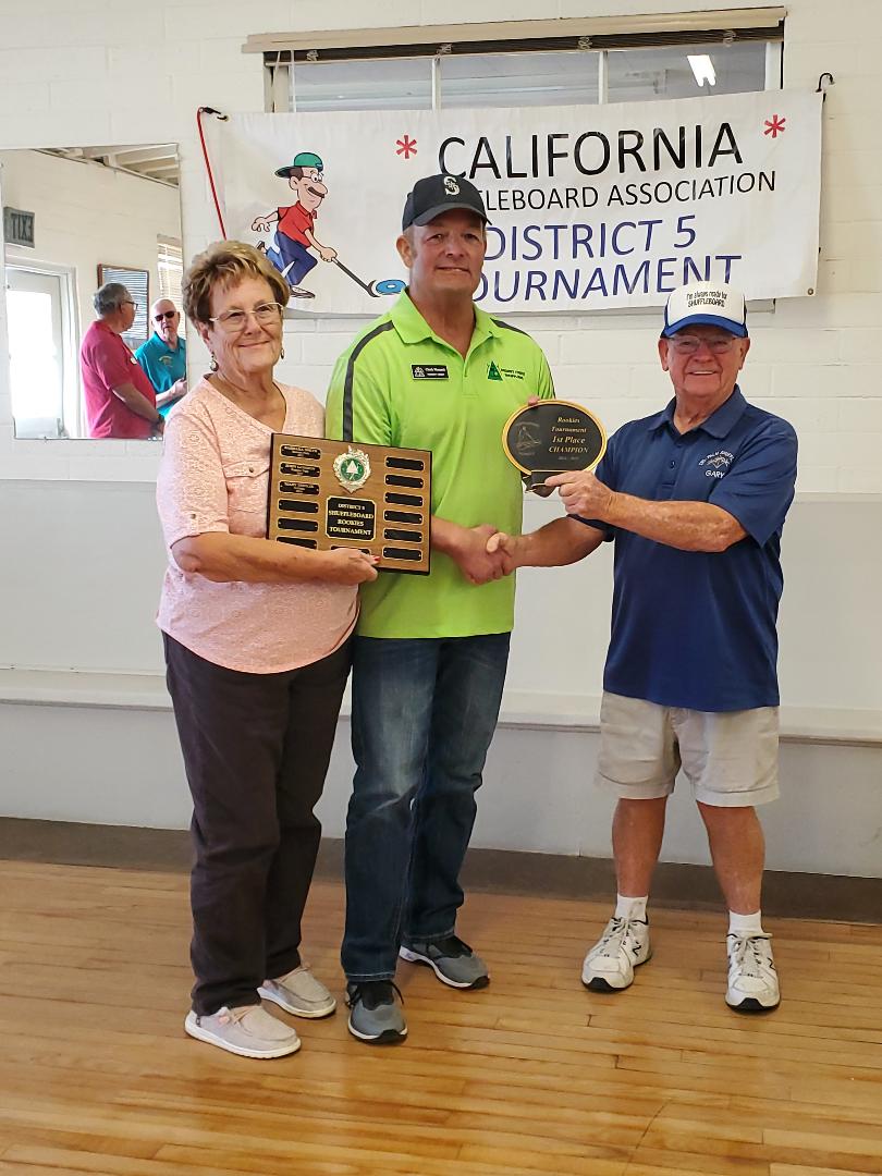 The Champion, Chuck Maynard Jr., will have his name engraved on the traveling plaque awarded in memory of Gene Eager. Gene won the Rookie Tournament in 2008. Throughout the years of Gene serving on the District 5 executive board, he worked diligently to promote shuffleboard and he was always willing to help new shufflers learn to shuffle. The Rookie Tournament was Gene’s favorite District 5 tournament.