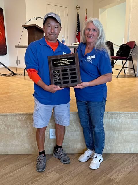Champions Yvonne & Vern were also presented the perpetual traveling plaque sponsored by Nancy & Jerry (deceased) Grieve from the Indian Wells Shuffleboard Club.