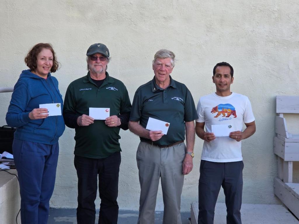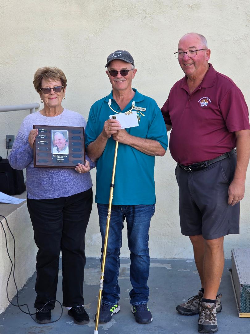 In 2023, then District 5 President Gary Adams suggested that District 5 honor Gene by hosting this tournament. Thank you to all the volunteers who willingly stepped up to help at the tournament. District 5 President Blaine Clarke, Safari, was Head of the Boards; John McCready, TriPalms was Head Referee; and Head Scorekeeper was Matt Durkton, The Canyon, assisted by Noelle Stephens, Desert Crest. And Gene’s wife, Shirley, was the ATM preparing the charts.